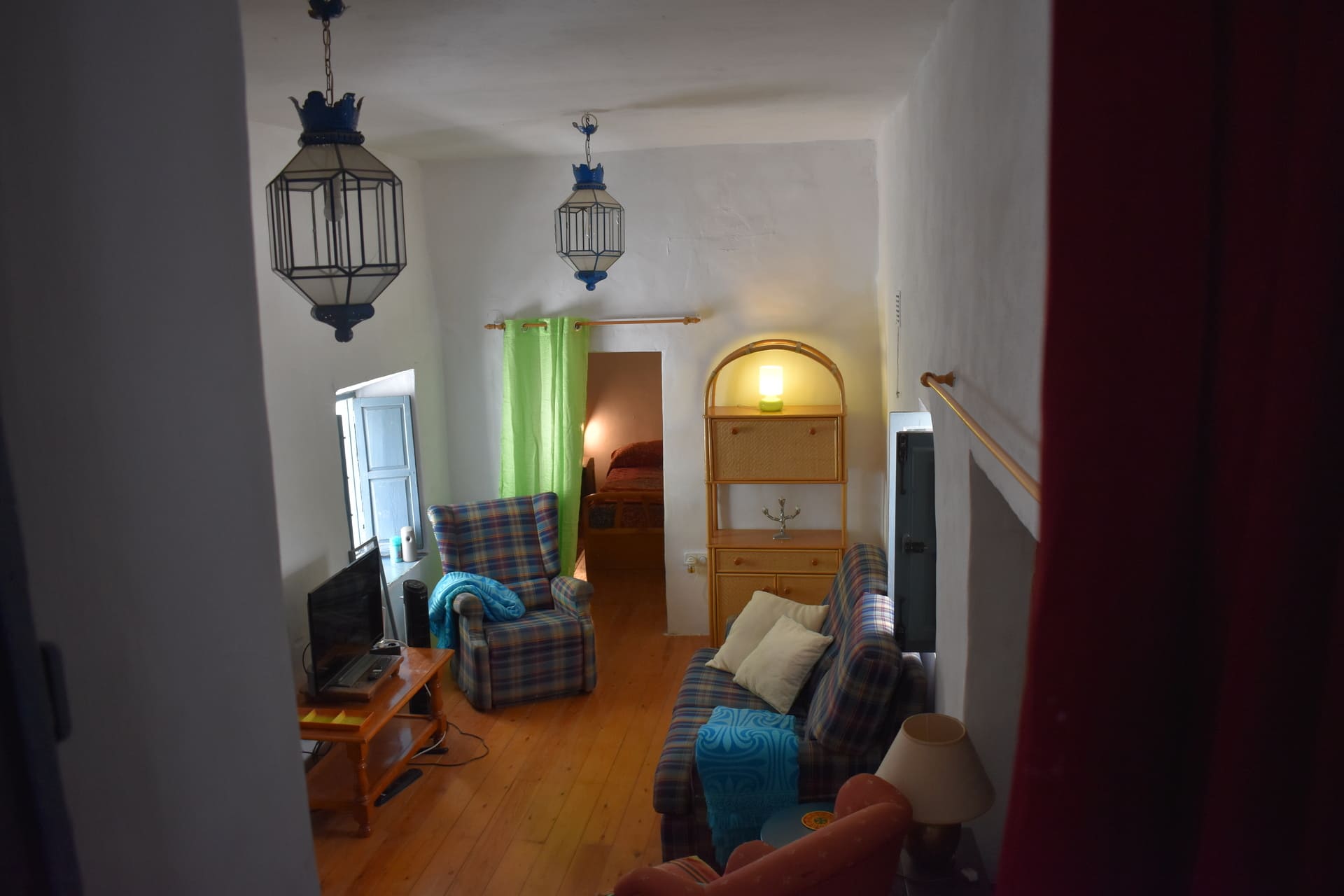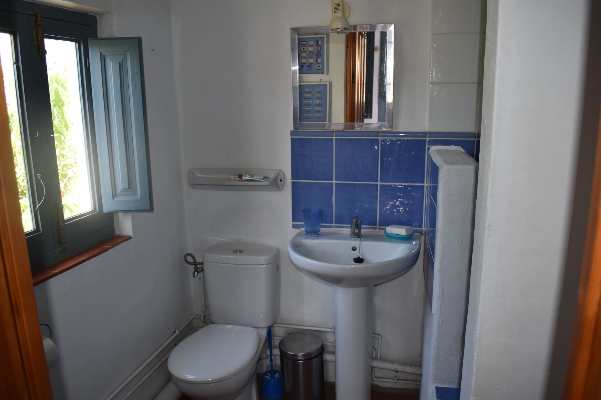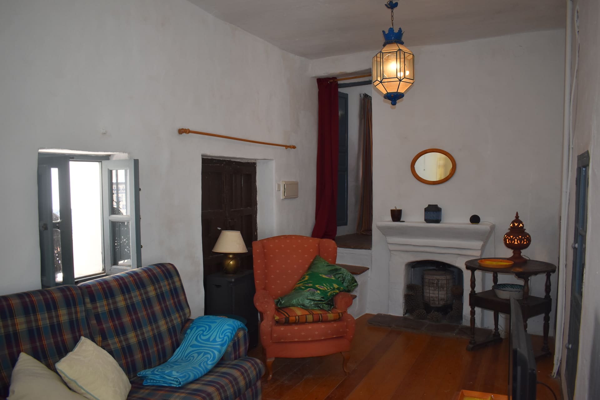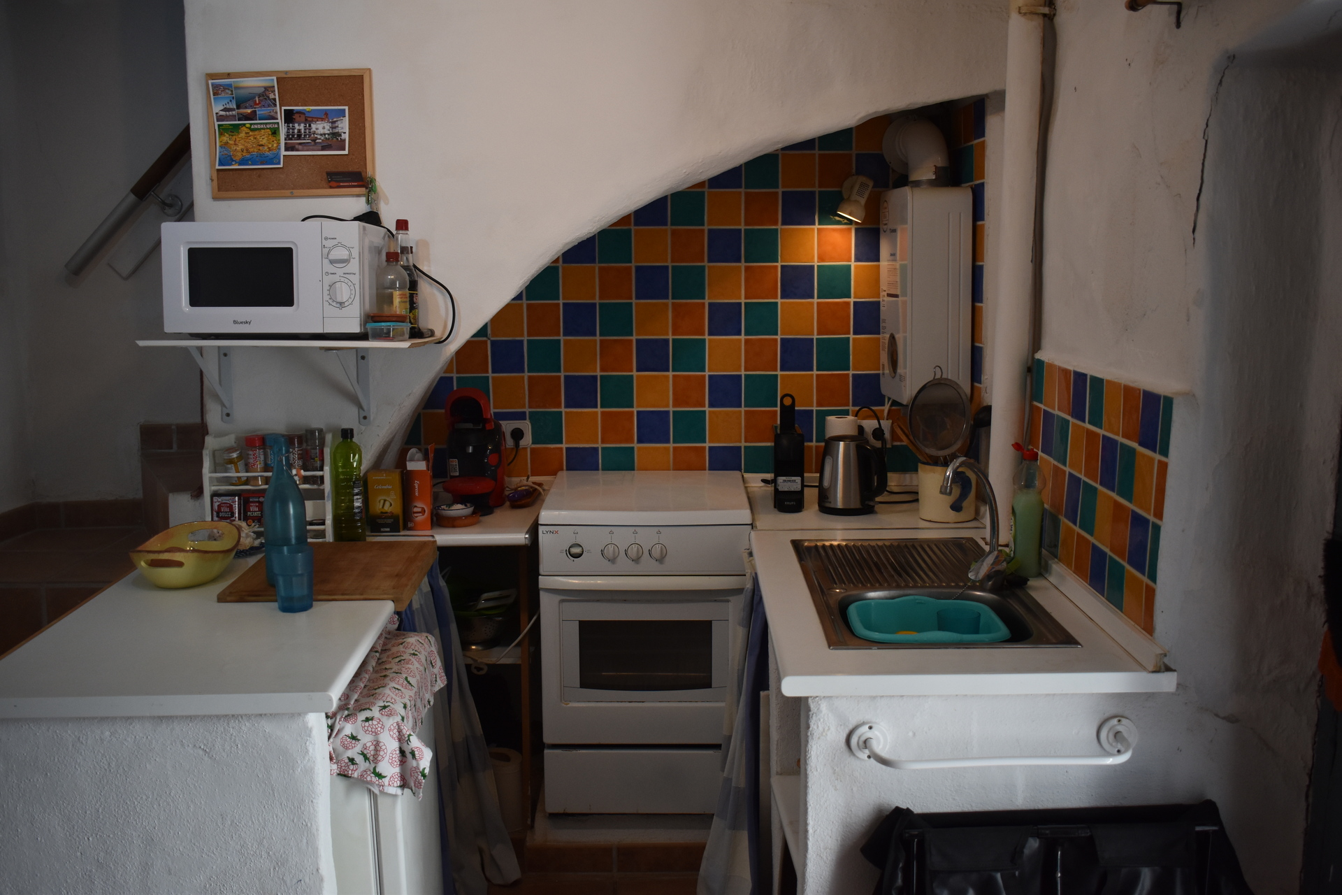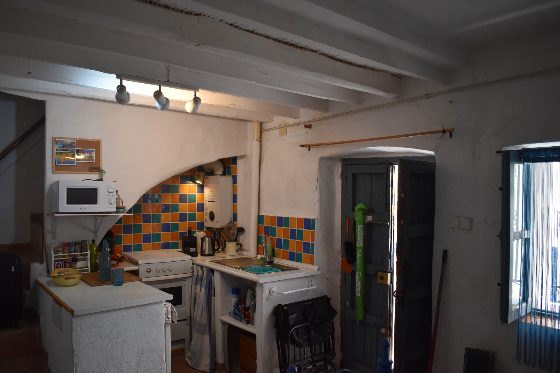 Property: The property has two access points from two different streets. The main access leads straight into the kitchen / dining room which are located on the ground floor. A flight of stairs lead to the first floor where this is a bathroom with shower, a walk-through bedroom, the living room (with access to the street behind the property) and another bedroom with sink. The stairs continue to the second floor which provide access to the lower roof terrace and a separate guest annex consisting of a bedroom with en-suite bathroom and shower. Atop the separate guest annex is the second, higher roof terrace.